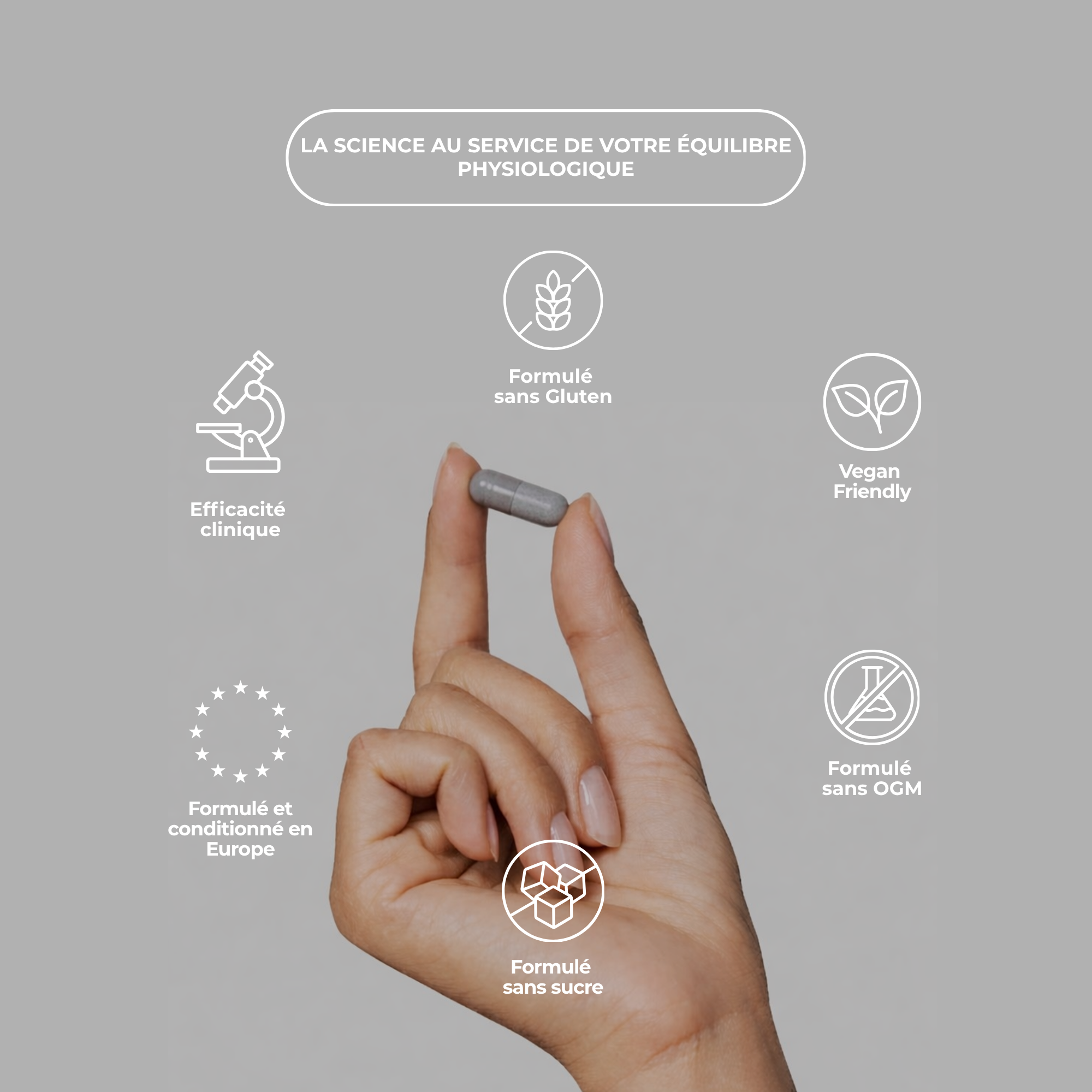 Gélule végétale sans gluten ni lactose, formulée en Europe selon les plus hauts standards de qualité. Une composition simple, pure et performante.