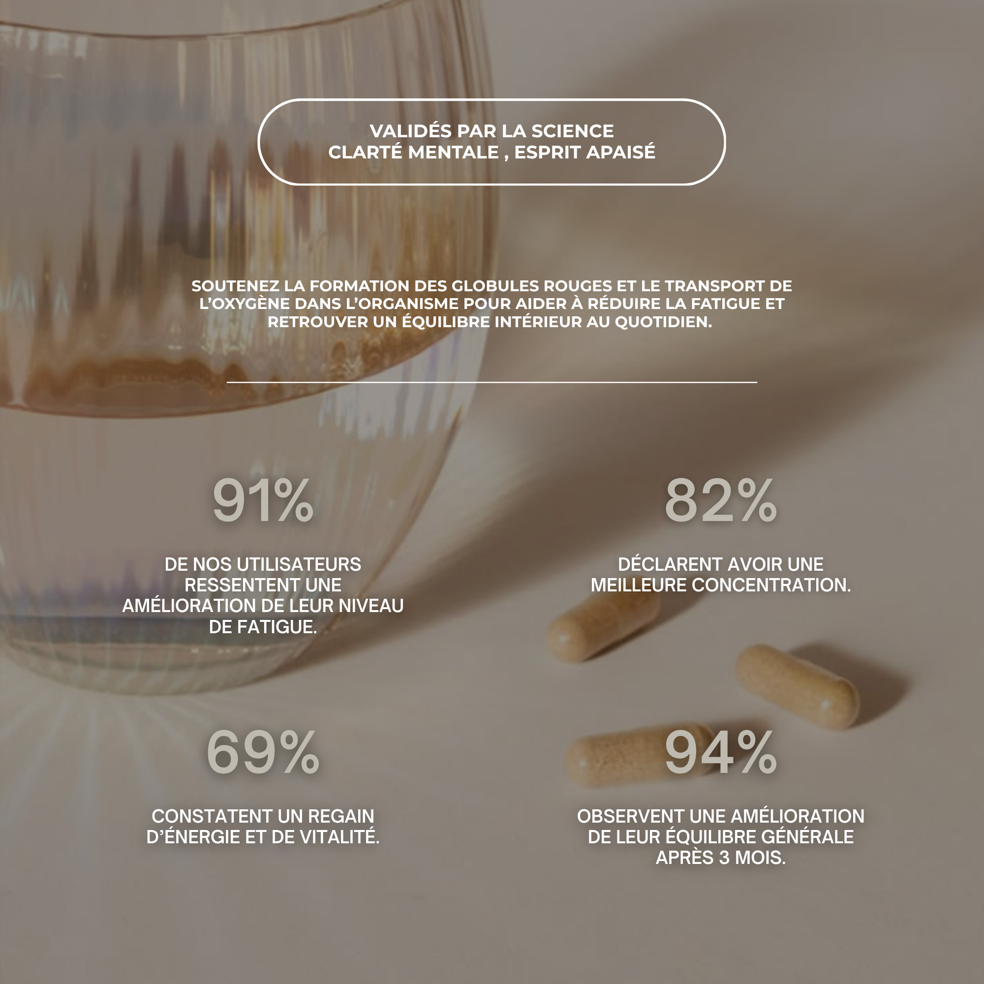 76 études cliniques et pré-cliniques réalisées sur nos ingrédients, incluant des études contre placebos.